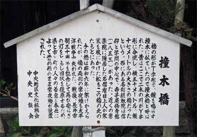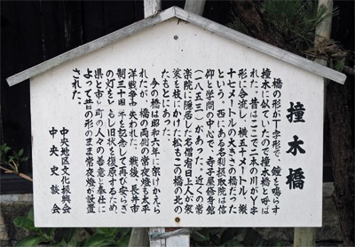 鐘をたたく撞木というT字型の仏具に橋の形が似ていることから名づけられたとのこと。もともとは橋の下が川の合流地点でした。
