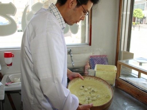 注文を受けてから黒蜜と青きな粉をまぶして作るため、できたてを味わえます。