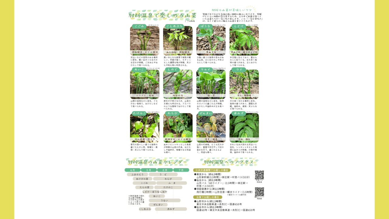 ひじおりおんせんさんさいのげっかんしょくふぇあかいさい肘折の春でおいしいデトックスしませんか?