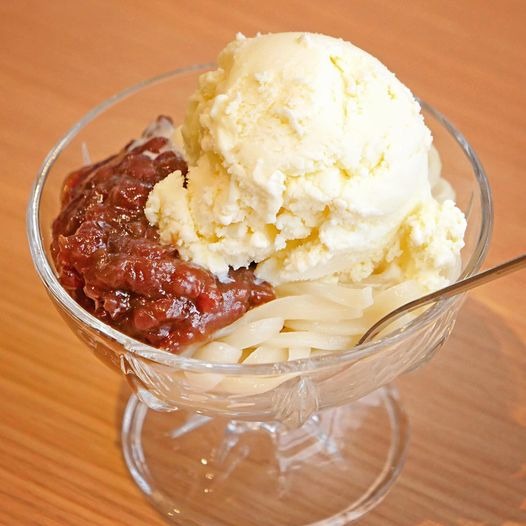 飛島の伝統食をアレンジしたスイーツ「あずきうどん」もぜひご賞味ください。