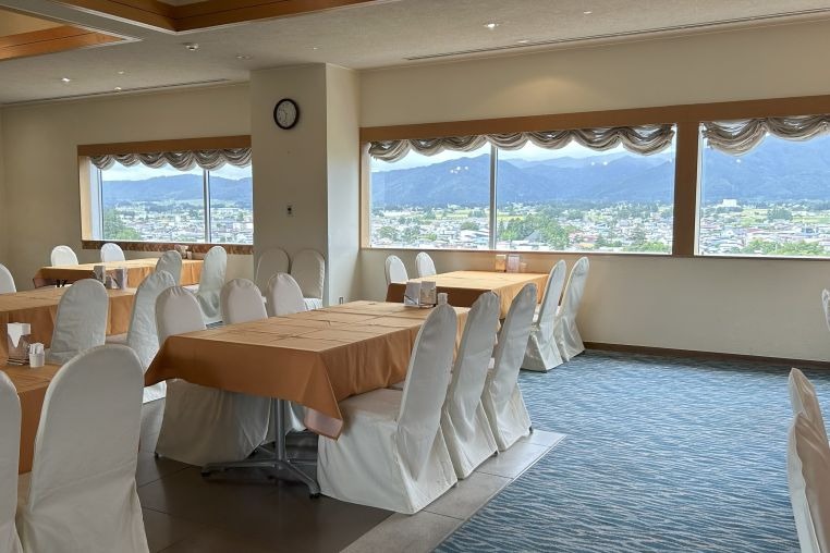 - ホテル最上階からの眺望とともに、ちょっと贅沢なランチ&ディナーを。長井のまちを見渡す特別な時間をどうぞ。