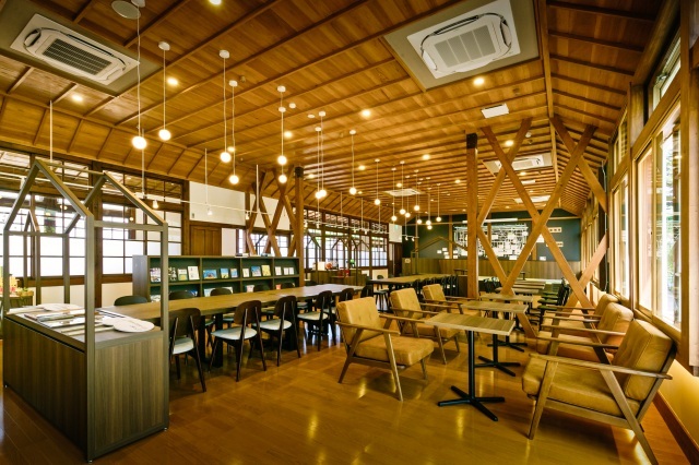 - 誰もが自由に過ごせるパブリックスペース。併設カフェでランチやスイーツも楽しめ、木のぬくもりに包まれた心地よい時間を過ごせます。
