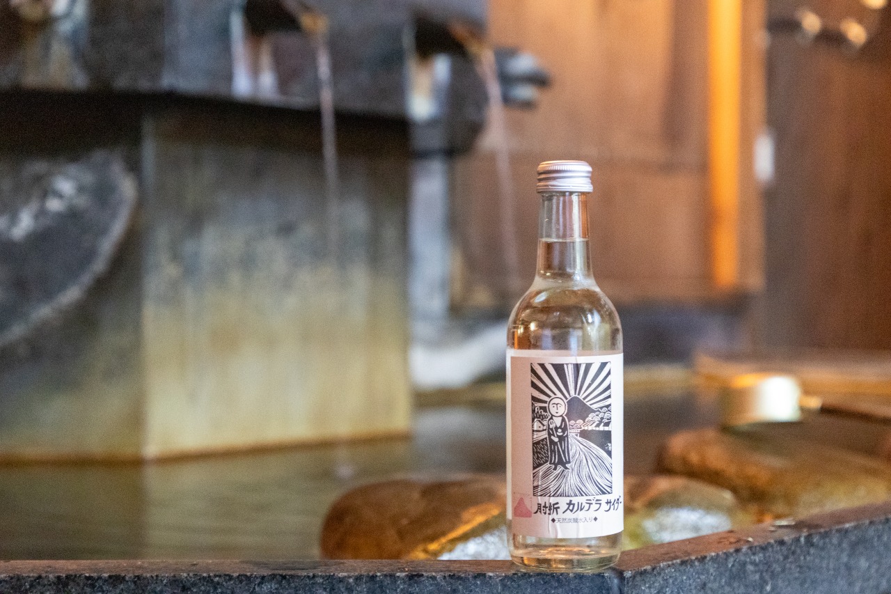 木を基調とした建物のカルデラ温泉館。雰囲気のある内湯のほかに石組みの露天風呂もあり、大自然の中でリラックスすることができます。