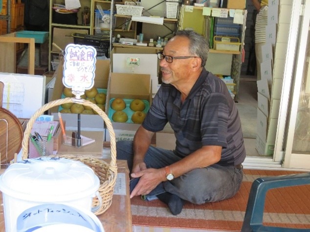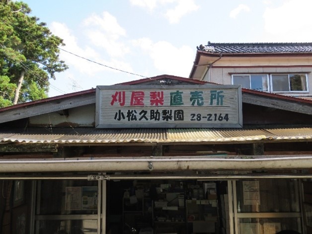 小松久助梨園は、先祖代々続く150年の歴史がある梨園で、今回お話をきかせていただいた小松賢さんは5代目です。実は約20年前にご自身の梨園について調べたそうで、明治初期にイトウカンスケさんが梨を植えたことがきっかけでこの梨園が始まったそうです。また、小松久助梨園では梨以外にも、お米やお盆用の菊を栽培しており、小学生にお米の授業も行っているとのことでした。