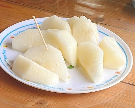 いただいた梨は「幸水(こうすい)」。幸水は小松さんが生産されている梨の中で出荷が1番早い品種だそう。とてもみずみずしくて甘みが感じられました。いくつ食べてもジュースのようで飽きることなく食べることができます!