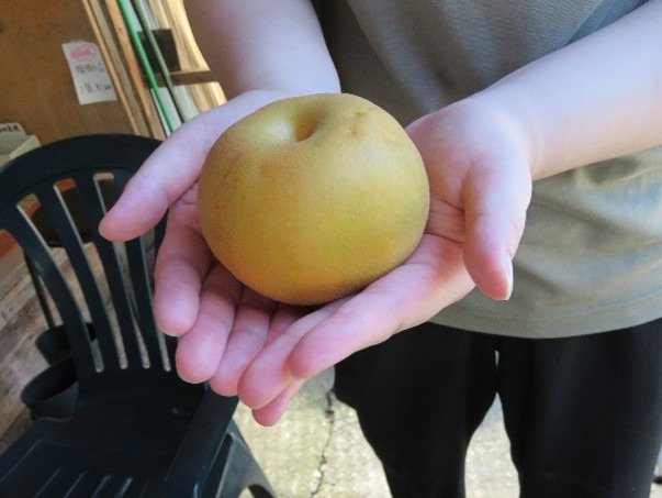 小松さんのご厚意で「食べていいよ!」と言ってもらえたため、梨を試食させていただきました。