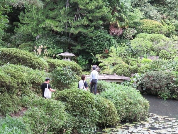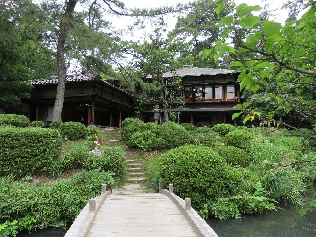 次に庭の「鶴舞園」は、庭にある池の中島に鶴が舞い降りたことから、庄内藩主の酒井忠器(さかいただたか)により名付けられたとされています。庭園内には佐渡赤玉石や伊予青石など各地の色彩豊かな庭石があります。これは、当時北前船の帰り荷として、船の安定を図るために船底に積んで運ばれてきたものです。また、造営に関しては、江戸時代の港町を支えた港湾労働者(丁持:ちょうもち)の冬季失業対策として造園に従事させ生活に苦しむ人々を救済するという目的もありました。このようにして、地域住民と本間家によって造園された「鶴舞園」は2009年にミシュラングリーンガイド・ジャポンの二つ星の評価で、「清遠閣」は一つ星の評価を得ており、美的魅力が国際的にも認められているものとなっています!なお、2012年に国名勝に指定され、2017年には、「鶴舞園」が日本遺産「北前船寄港地・船主集落」の構成文化財となっています。そのため、外国人観光客も増えつつありSNSを活用して幅広く情報を発信しています!