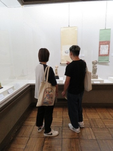 企画展は年に7回行っていますが、その中でも1948年(昭和23年)3月から始まった「雛人形展」について、始まったきっかけとこだわりをお聞きしました。1948年(昭和23年)は、第2次世界大戦後から間もない時だったため、皆さんに見てもらって地域の方々を元気づけることを目的に開催されました。酒田には雛人形を見て回る「雛見」という風習があり、雛人形を皆さんに見てもらいたい、知ってもらいたいということで本間美術館に寄贈されたものもあるそうです。その他の展示に関しては、設定したテーマを深く知ってもらうために美術品を選んでいます。