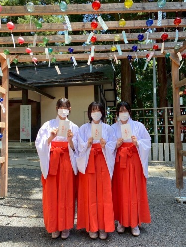 二つ目は、「かなで」という祈願祭です。6月から9月には、参拝者の願いを風鈴に託す意味をこめて、境内に風鈴をつるすことができます。風という目に見えない自然の力が、風鈴を通して目や耳で感じることができるようになります。目に見えない力に思いを馳せることの大切さを体感することができます。