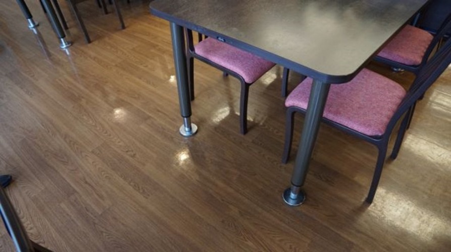 室内に入ってすぐに気づいたのがテーブルの高さ。「特別感を感じさせない」配慮がすてきです。車いすの人や子どもさんにとって、とても使いやすいと思います。食卓の脚も、その場で簡単に高さが調整できるようになっています。