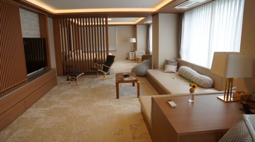 2024年に、ツインルーム2部屋を統合しバリアフリーに配慮した長期滞在用客室としてリニューアルされました。その広さと存在感に圧倒されます。