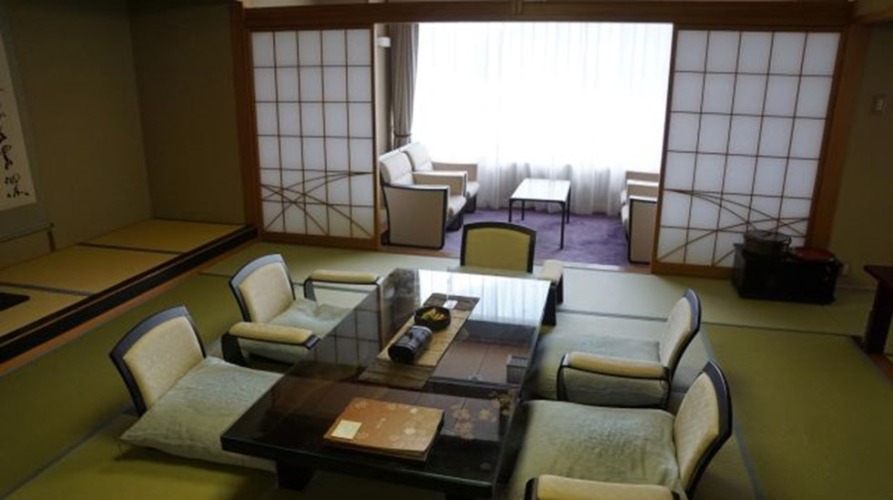 私たちが行ったときは普通の客室としてセッティングされていましたが、畳の大きさが盤面を撮影するビデオカメラやその関連機材の設置を前提にしている、など「対局室」に特化した設計になっている部屋です。