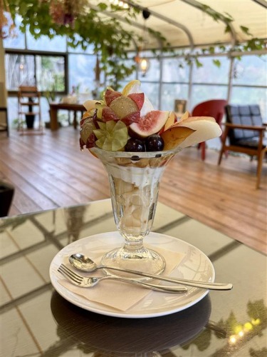 ぶどう、りんご、いちじく、柿など、旬のフルーツをまとめていただけるとっても贅沢なパフェ。一つ一つが大きくカットされていて満足感も高め◎。いろいろな味が楽しめるし、いちじくなど、普段食べる機会の少ないフルーツも入っているのが嬉しい!マスカットやぶどうの飾り切りも本当に綺麗で、視覚的にも楽しめます!季節によってフルーツが変わるのでリピートする楽しみも!