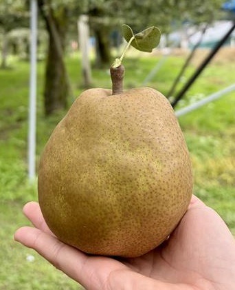 西洋梨にはいろいろな品種があり、収穫が早い方からバートレット→オーロラ→マルゲリット・マリーラ→ラ・フランス→シルバーベルなど。ラ・フランスの収穫時期は開花からの積算温度で計算し、早い年だと10月8日前後。ラ・フランスは甘くて柔らかく、他の品種はもう少し和梨に近いのだとか。