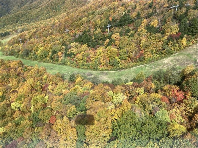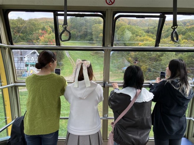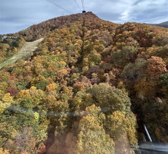 ゴンドラからはスキー場のゲレンデや街並み全体、360度景色を楽しむことができました。標高が高くなっていくにつれて紅葉がはっきりとしてきて、とっても綺麗でした!取材日の10月中旬は、気温的にもちょうどよい季節です。