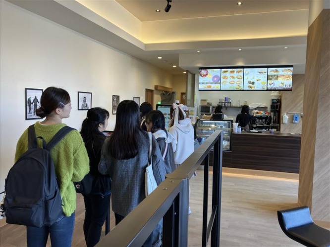 SORAMADO CAFÉは黒の外壁がおしゃれで、店内は木のあたたかみが感じられる壁と床で、落ち着いた雰囲気でした。注文はタッチパネル式で、英語、韓国語、中国語にも対応しているため、海外からのお客様も安心して利用できます。店員さんも明るい笑顔が素敵でした。