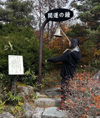 テラス席から出て少しだけ山に登ると、見晴らしのいい場所があります!山全体を見渡すことができますし、開運をお祈りすることもできます。