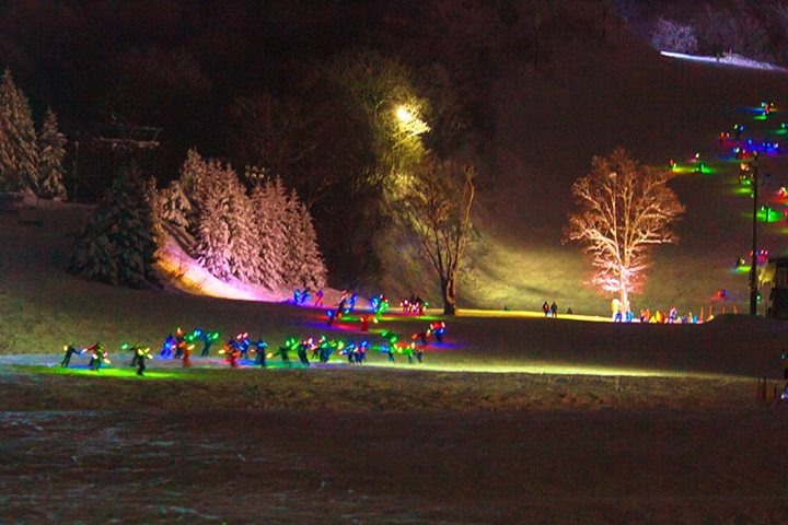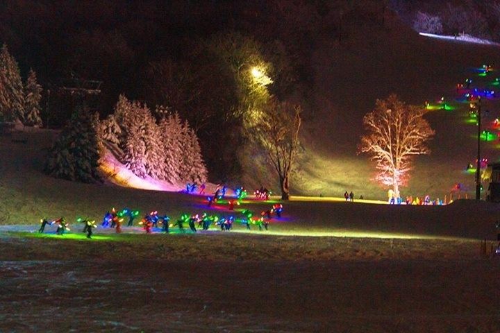 夜のゲレンデを松明(LED照明)を掲げて滑り降りる蔵王名物「1,000人松明滑走」などさまざまなイベントが