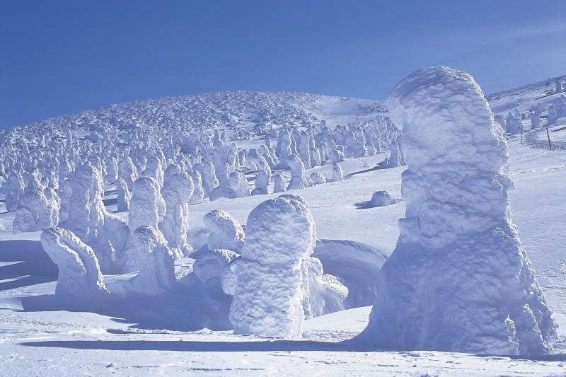 日本では特に東北の山などに見られ、「スノーモンスター」「アイスモンスター」とも呼ばれる珍しい自然現象です。