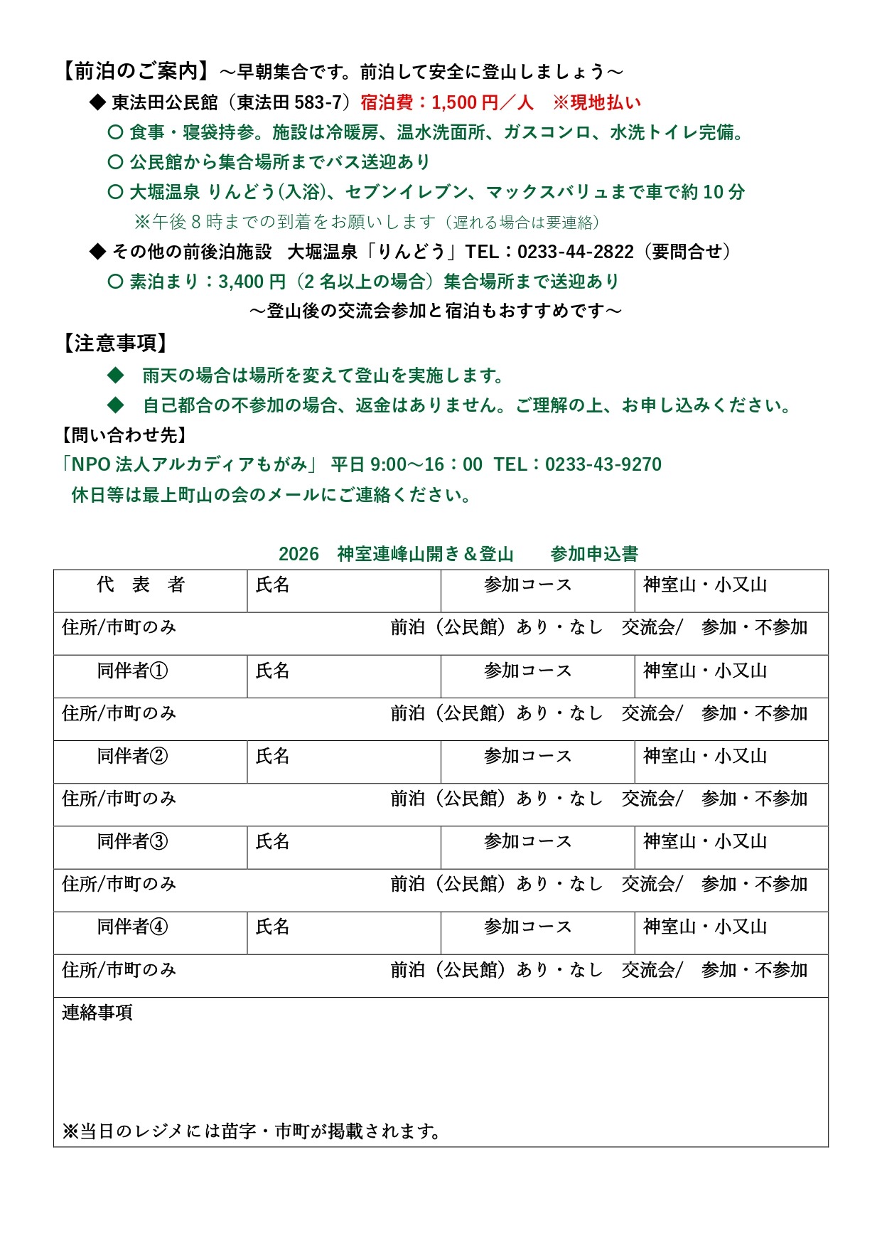 ②最上町山の会にメールで申し込み。kamuro-komata@ymail.ne.jp