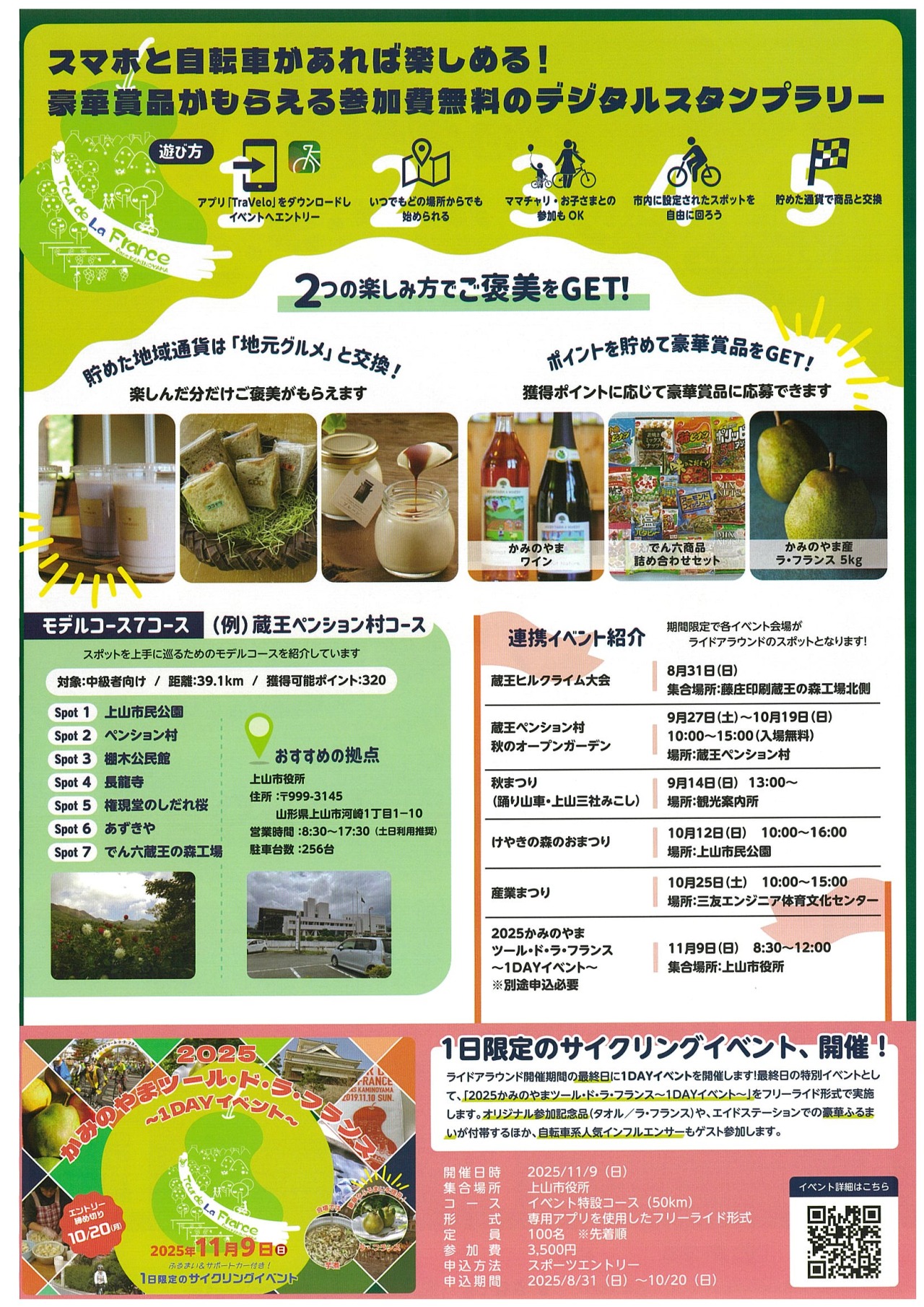 かみのやまつーるどらふらんすたいかい豪華賞品がもらえる!自転車デジタルスタンプラリー
