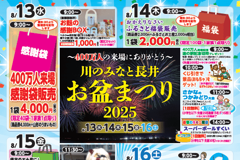 かわのみなとながい おぼんまつり2025-おかえりなさい、ふるさとへ- 老若男女楽しめるイベント盛りだくさんです。
