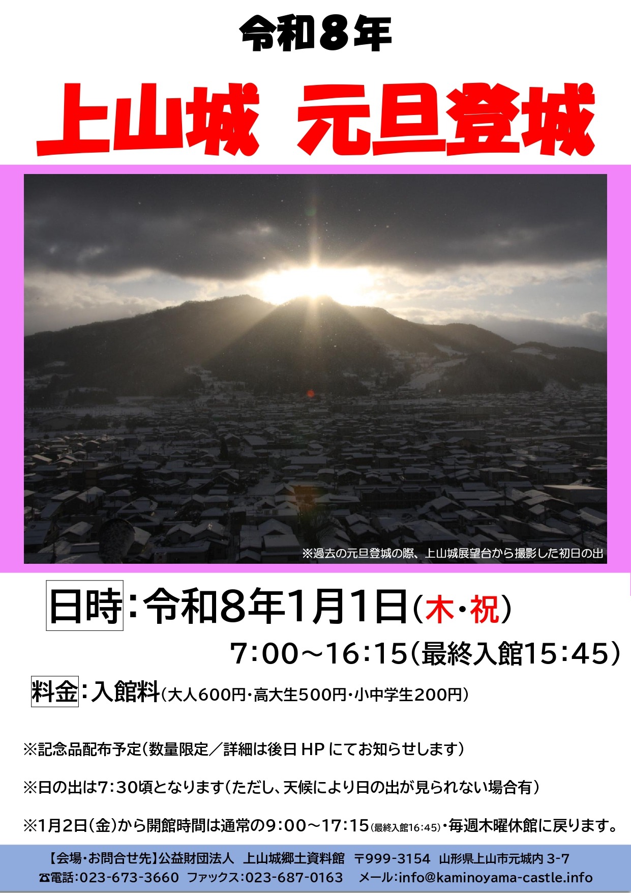 かみのやまじょう がんたんとじょう新たな年の初めに元旦登城しませんか!