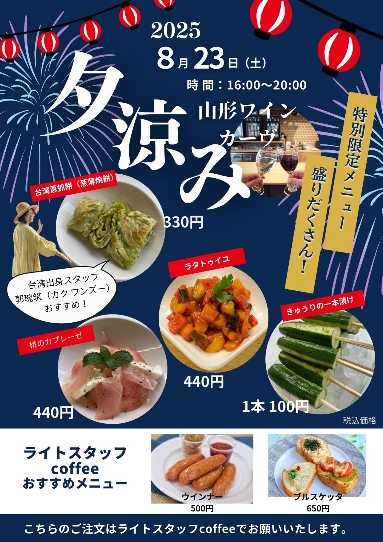やまがたわいんかーヴでゆうすずみ夏の夜、ワイン片手に夕涼みしませんか?