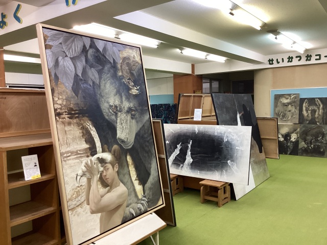 東北芸工大生の迫力ある卒展作品を多数お預かりし、閉校した小学校を含む富沢地区の2ヶ所で多数展示する活動を不定期にしております。