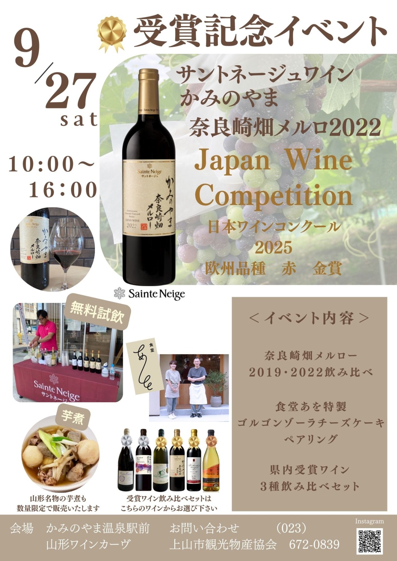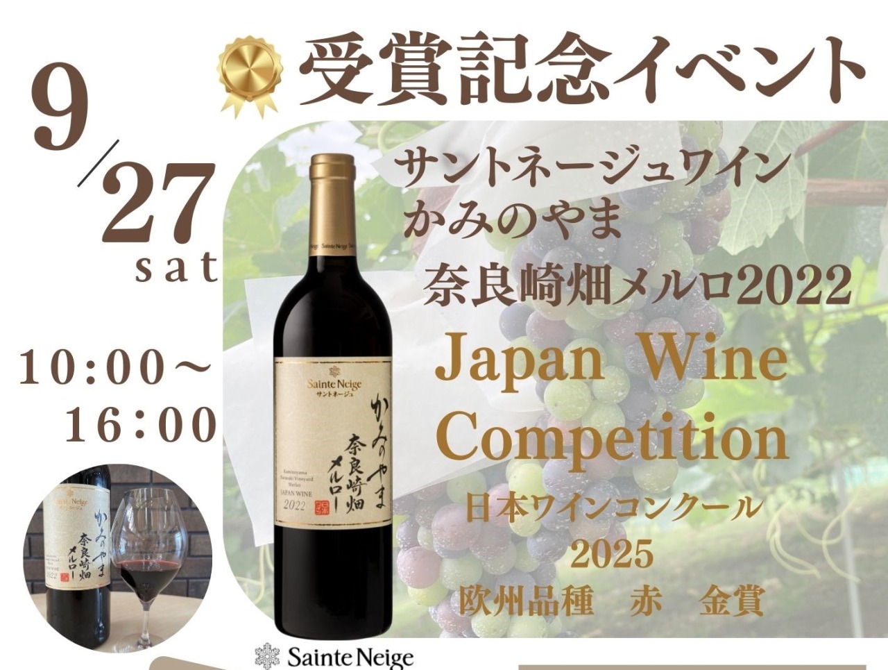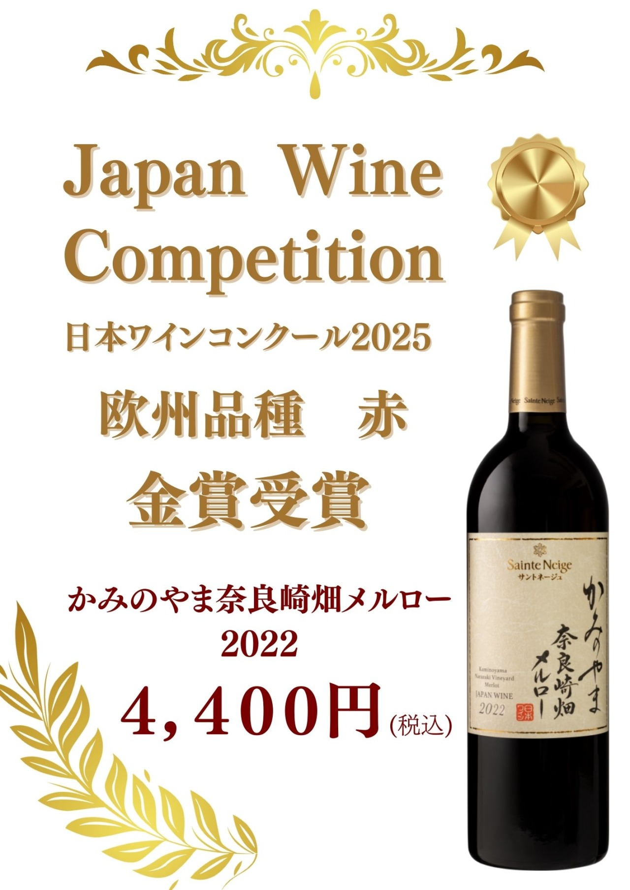 日本ワインコンクール2025にて、サントネージュワイン株式会社「かみのやま奈良崎畑メルロー2022」が金賞を受賞しました。おめでとうございます!
