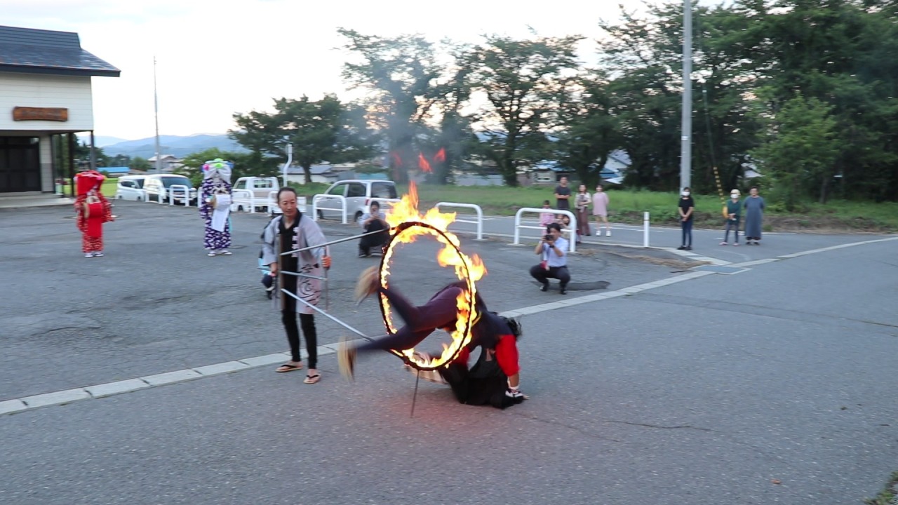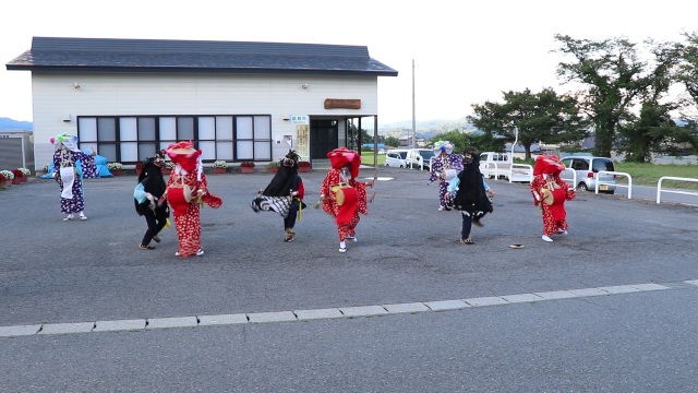 また、踊りの終盤で踊られる雌獅子による輪くぐり(火の輪くぐり)は獅子踊りの一番の見せ場となります。