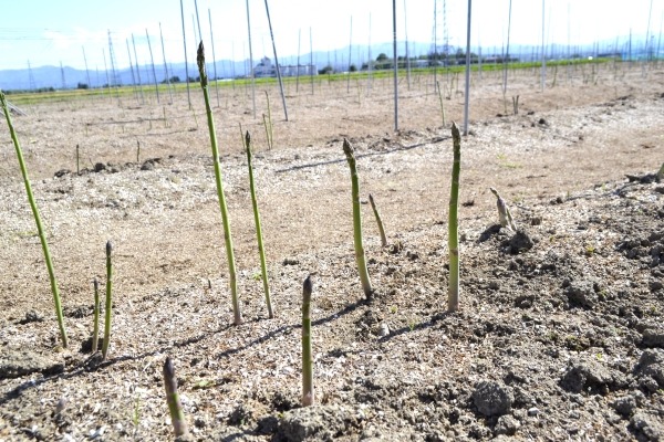 ①春採れのアスパラガス収穫体験