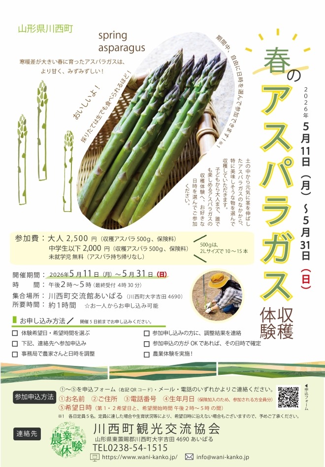 \ 2026年「春のアスパラガス収穫体験」(川西町) 参加者募集 /