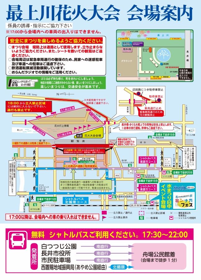 【花火会場】午後5時以降は会場内への車乗り入れはできません。指定駐車場あり(【会場案内】をご覧ください) - ウェブサイト