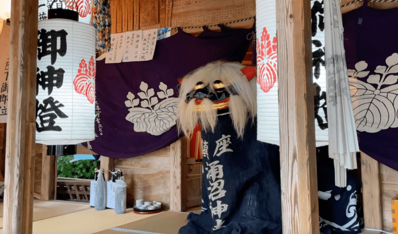 もともとは神様を連れない獅子舞だったので、「橋渡し」や「丁切り」の際、獅子が神社に残してきた神様を心配する動きをみせます。これは町内でも珍しいものです。