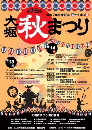 愛宕神社 熊野大社の祭礼。神輿が町内を練り歩き、「もがみ元気ステージ」ではステージショーなどが開催されます。また、9/6の夜に開催する大花火大会では色とりどりの花火が最上町の夜空を飾ります。