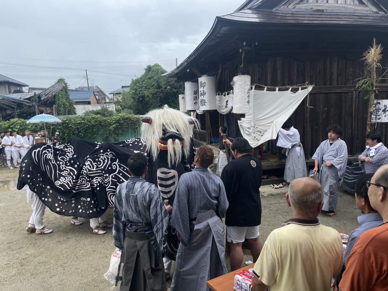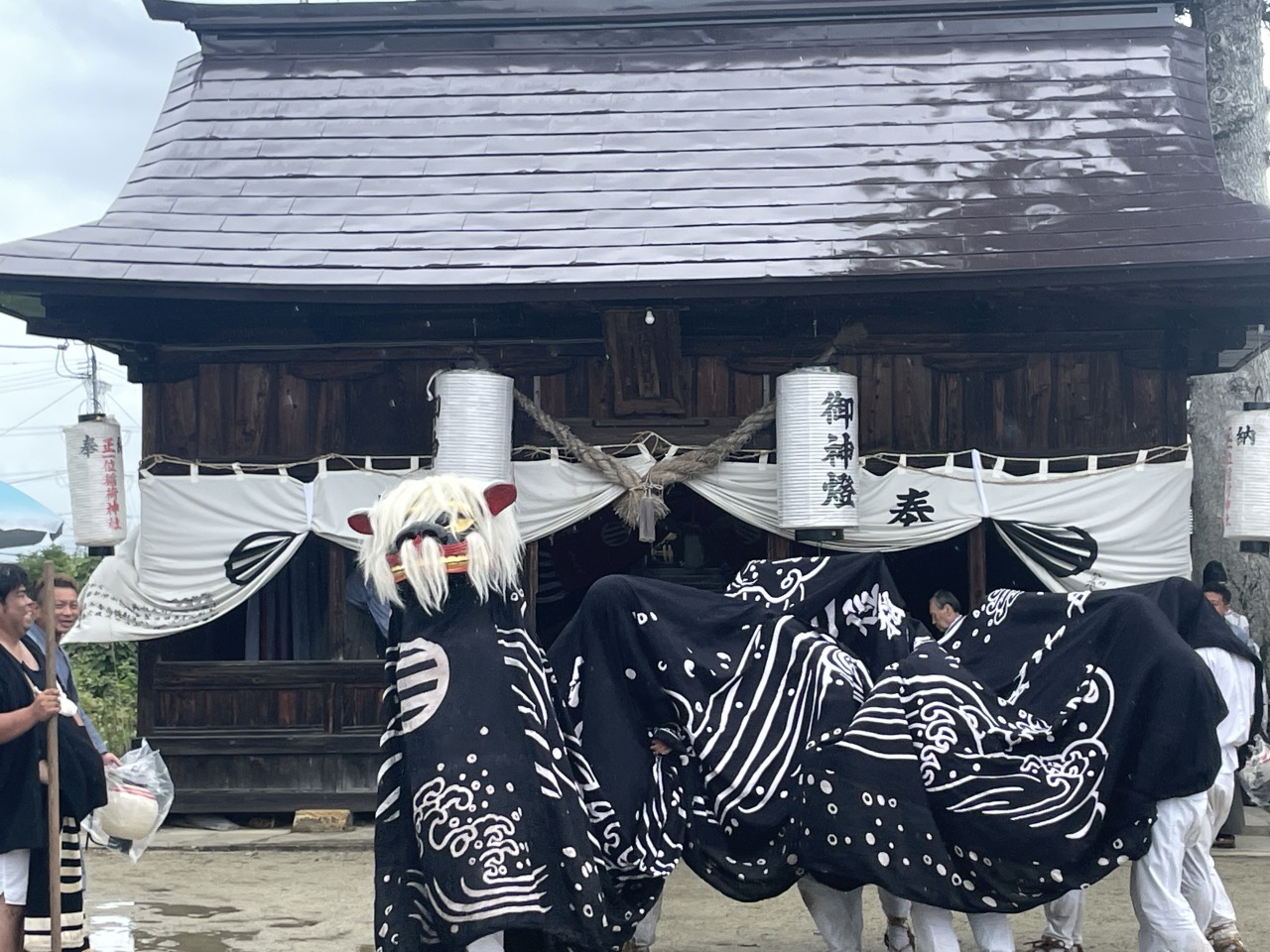 ししまい(いまいずみ いなりじんじゃれいさい)正一位稲荷大明神と唱え、明治5年3月「稲荷神社」と改名。明治34年今泉大火で全焼するも、明治39年には再建。翌40年には白山神社を合併し、大正5年本殿を再建する。宮の總宮神社から指導を受けて獅子舞を始めたといわれてる。毎年8月15日の例大祭は地区民あげて厳粛かつ盛大に行われている。獅子舞は、神社から出る時、入る時が見せ場になります。