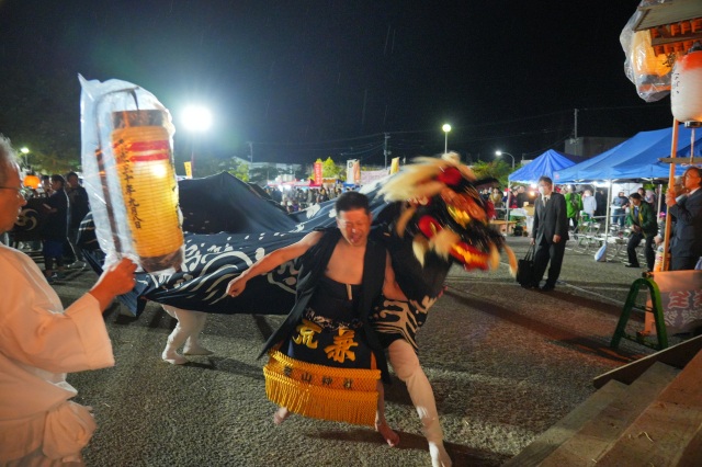 巻眉の大きな獅子頭で、角力、警固に向かう時に顎を下げ、頭を回転しながら望み、勇壮な格闘が特徴。