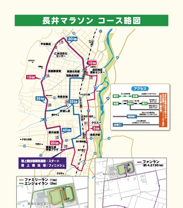 長井マラソンは、東北でも数少ないフルマラソンの公認大会。コースは、日本陸連公認・世界陸連認証コースの「ながい山の港町マラソンコース」です。