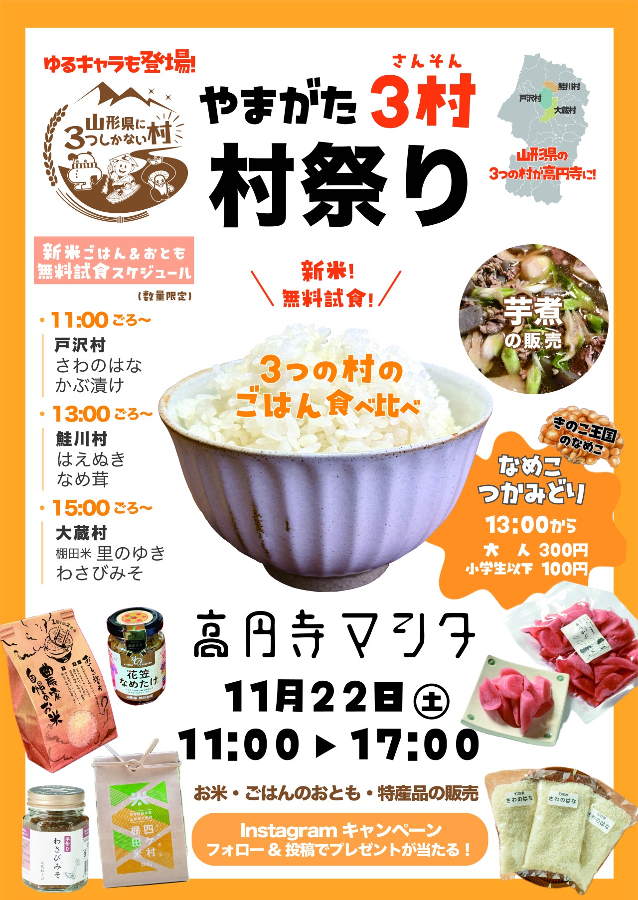 山形県にある3つの村(大蔵村・鮭川村・戸沢村)の新米を食べることのできる「やまがた村祭り」を開催します!