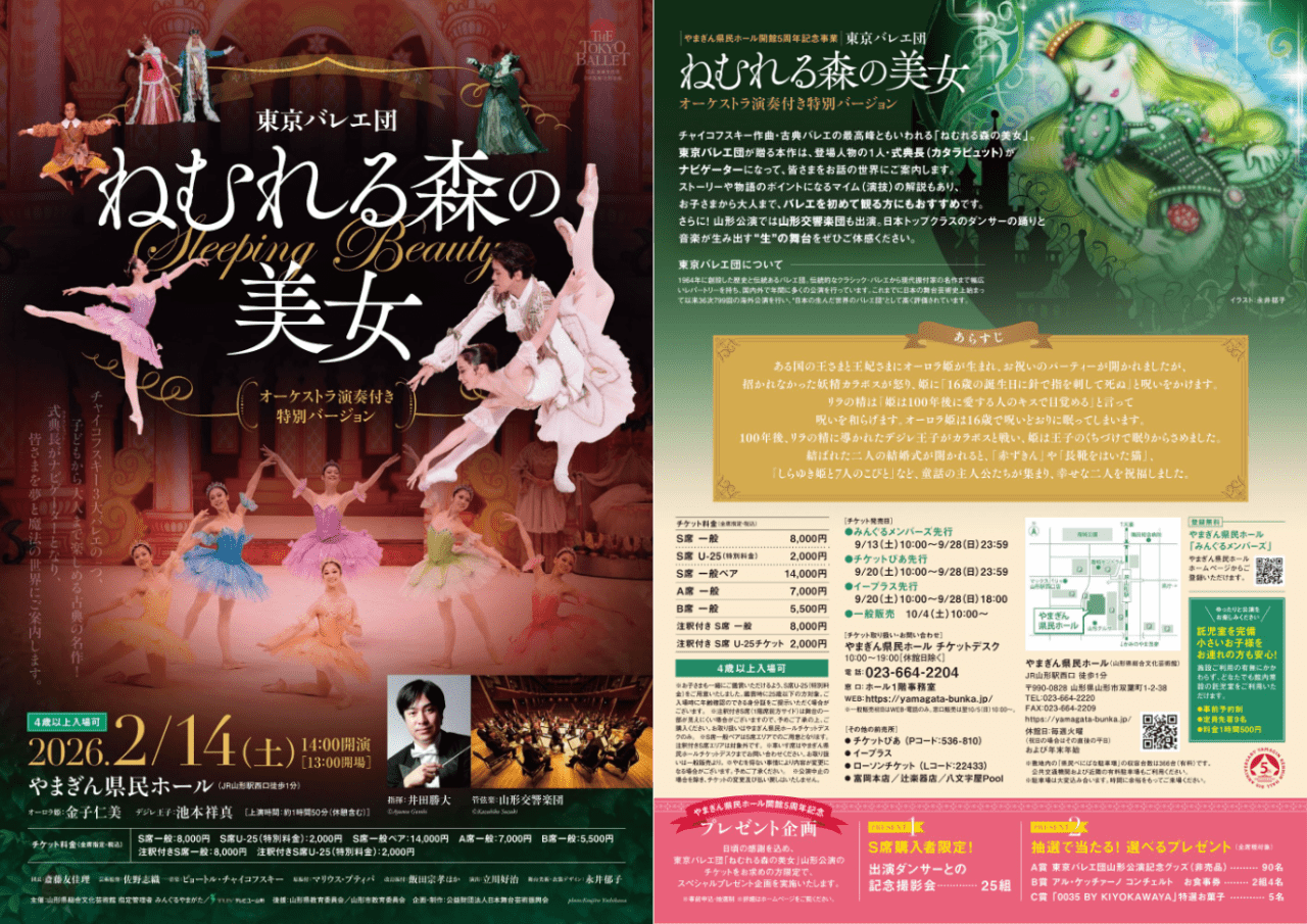 山形県「やまぎん県民ホール」で、東京バレエ団による『ねむれる森の美女』を上演。
